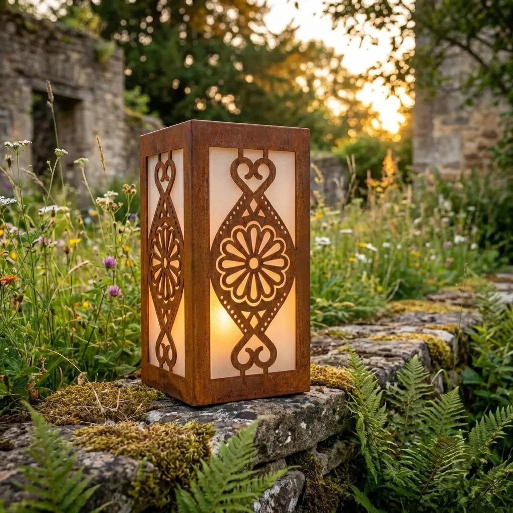 Corten daje efekt szlachetnej, rdzawej stali, czarny wygląda bardziej wyraziście i nowocześnie, biały rozjaśnia aranżację, złoty dodaje bardziej dekoracyjnego charakteru, a stal szczotkowana nadaje lampionowi elegancki, nowoczesny wygląd.