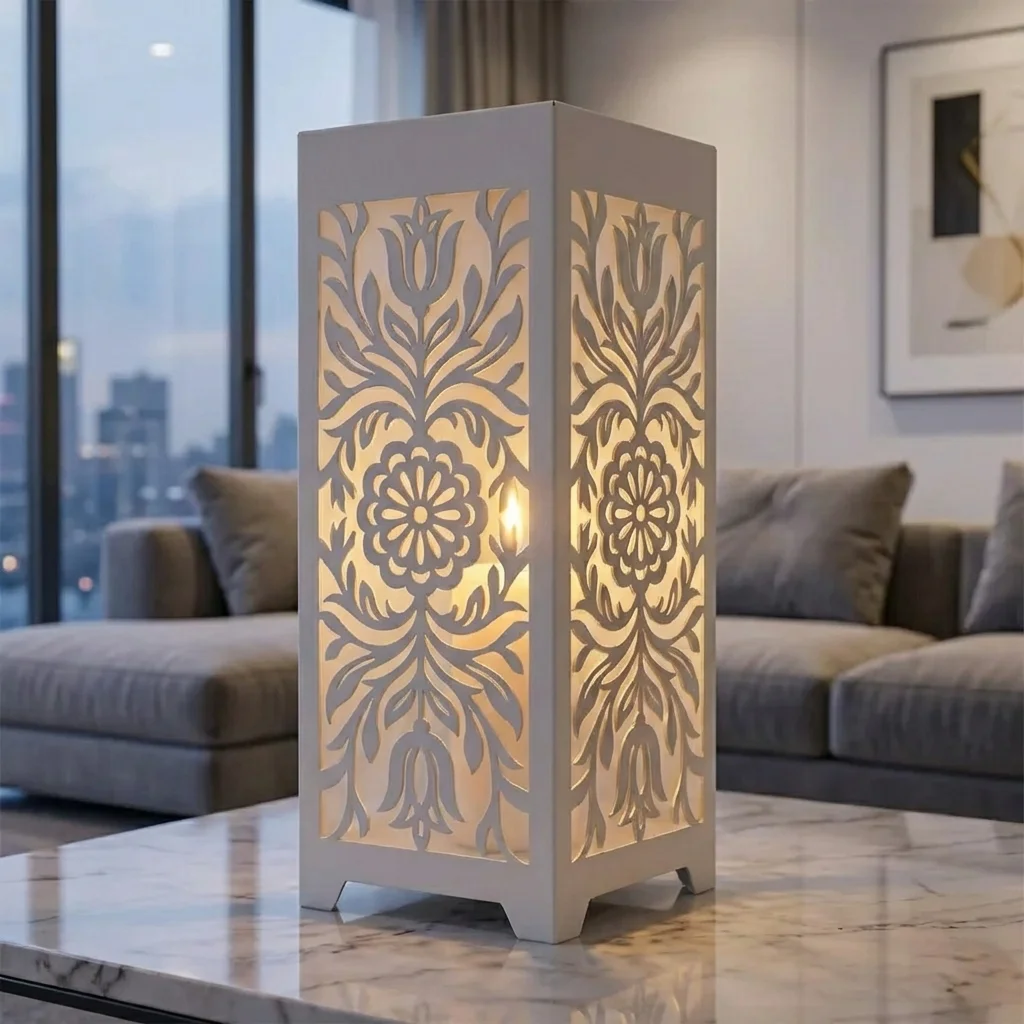 Lampion Złota Rozeta Tulipanów to elegancki lampion metalowy z ażurowym wzorem inspirowanym rozetą, tulipanowym motywem roślinnym i symetrycznym ornamentem. Złote wykończenie podkreśla dekoracyjny charakter modelu, a po zapaleniu światła wzór nabiera głębi i tworzy wyjątkowy, ciepły klimat w otoczeniu.