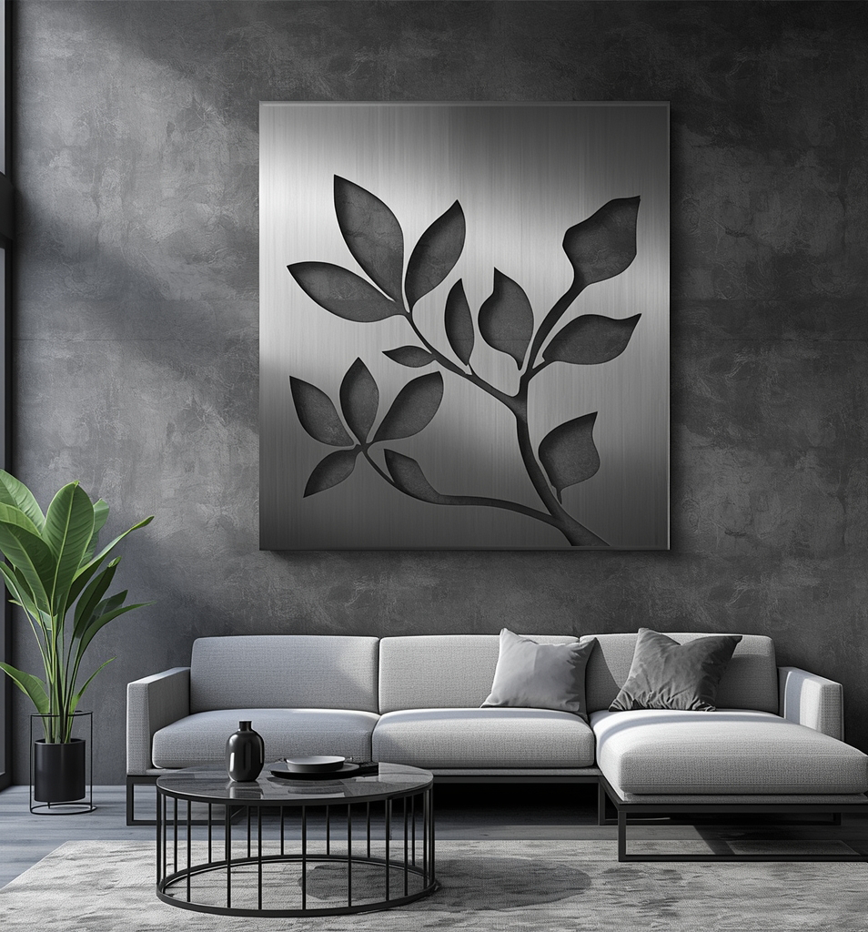 Panel dekoracyjny Leaf Harmony to propozycja dla osób ceniących subtelne, naturalne motywy w nowoczesnym wydaniu. Gładka powierzchnia stali kontrastuje z wyciętym wzorem gałązki, co tworzy minimalistyczny, a zarazem elegancki efekt wizualny. Panel wykonany jest z blachy stalowej o grubości 2 mm, dostępnej w wersji corten, malowanej proszkowo lub ze stali nierdzewnej. Doskonale sprawdzi się jako dekoracja ściany w salonie, biurze lub przestrzeni publicznej.