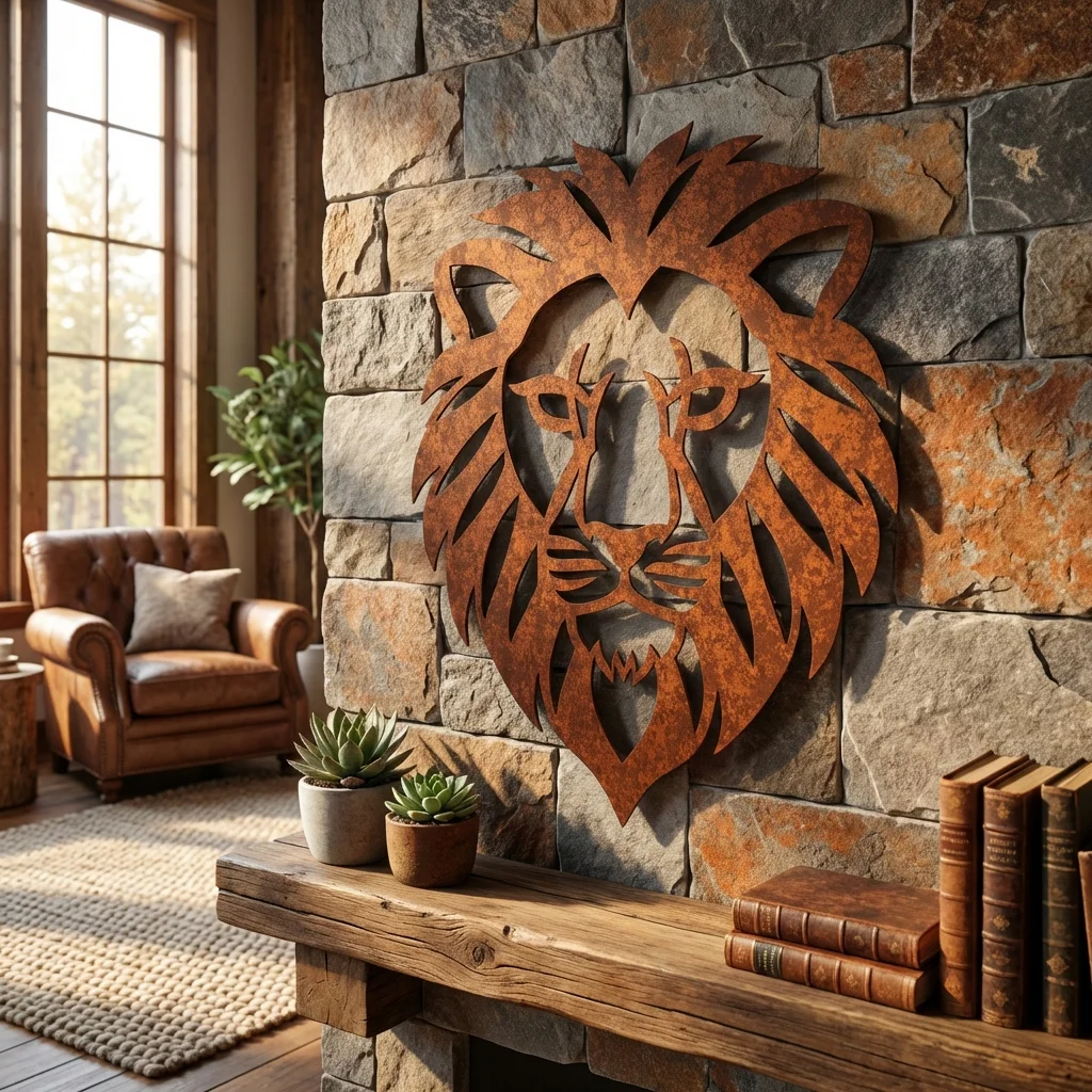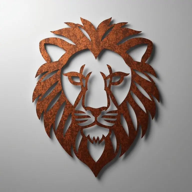 Metalowa dekoracja ścienna przedstawiająca majestatycznego lwa – symbol siły i odwagi. Idealna ozdoba do nowoczesnych i klasycznych wnętrz.