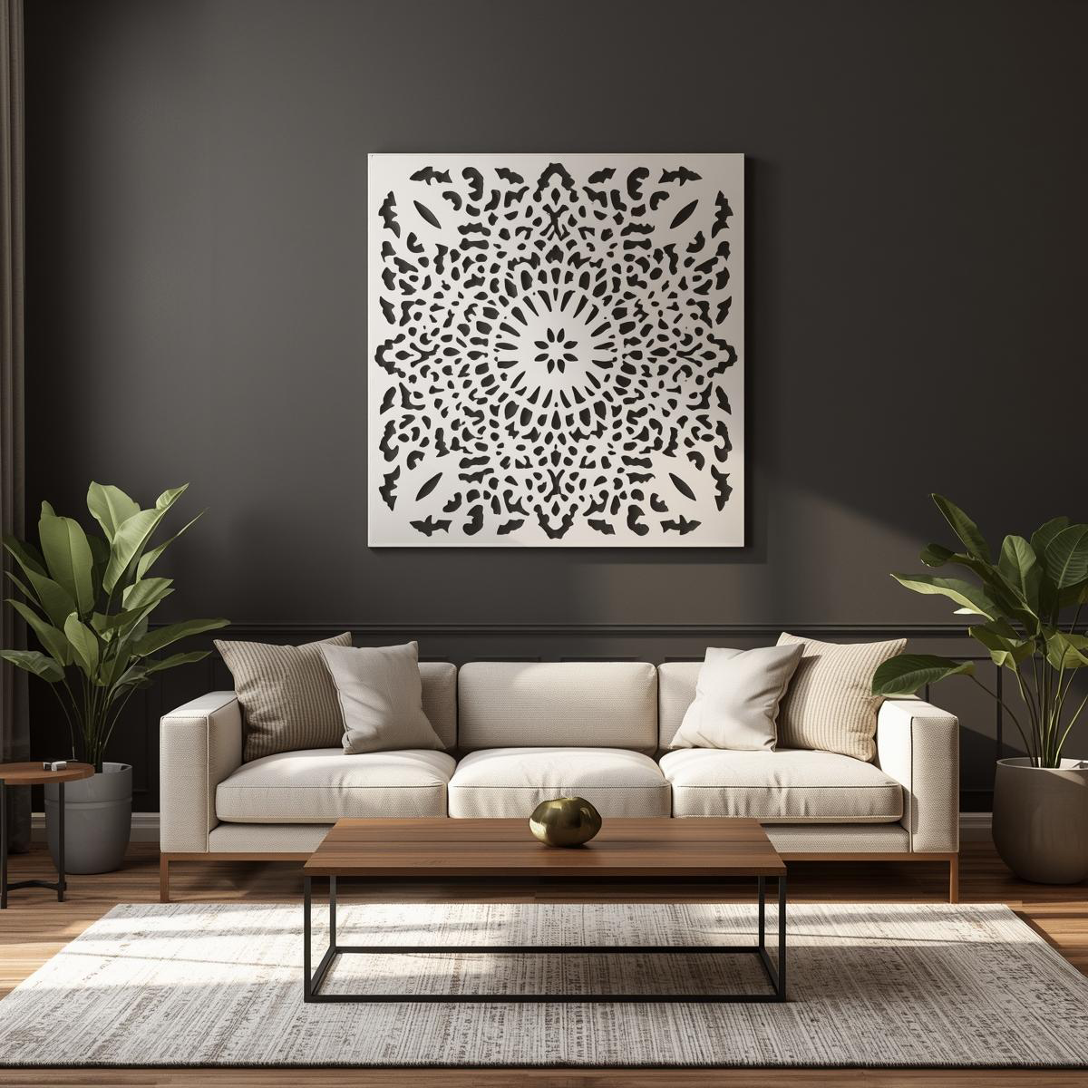 Ażurowy panel dekoracyjny w formie rozety, inspirowany motywem kwiatowym i orientalnym. Idealny do wnętrz i przestrzeni nowoczesnych.