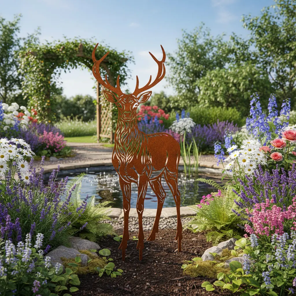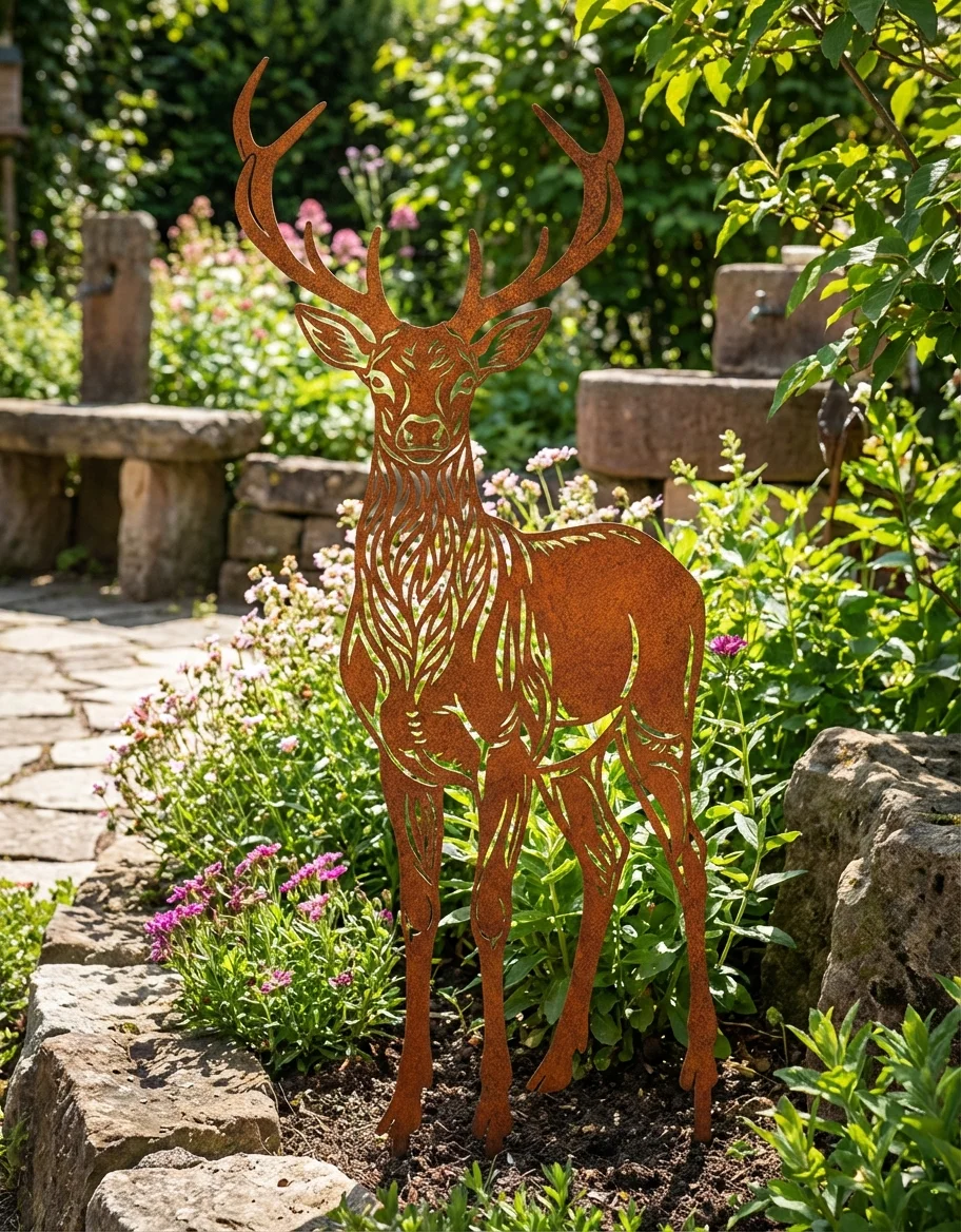 - Dostojna sylwetka jelenia – mocny, dekoracyjny akcent w ogrodzie.