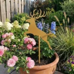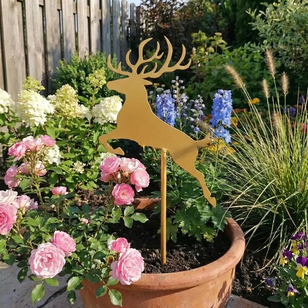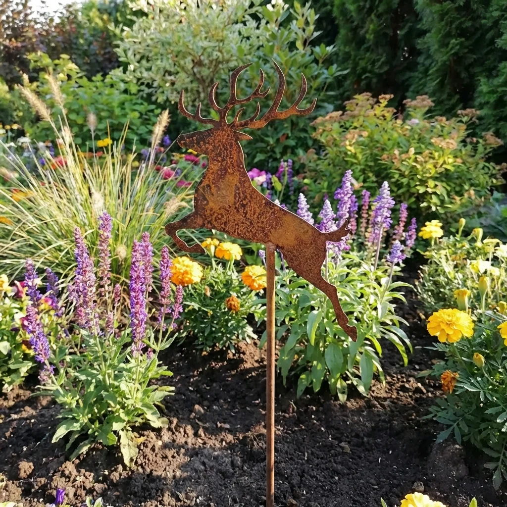 - Dynamiczna forma – jeleń w skoku dodaje ogrodowi ruchu i charakteru.