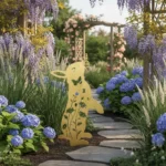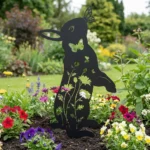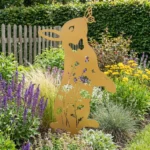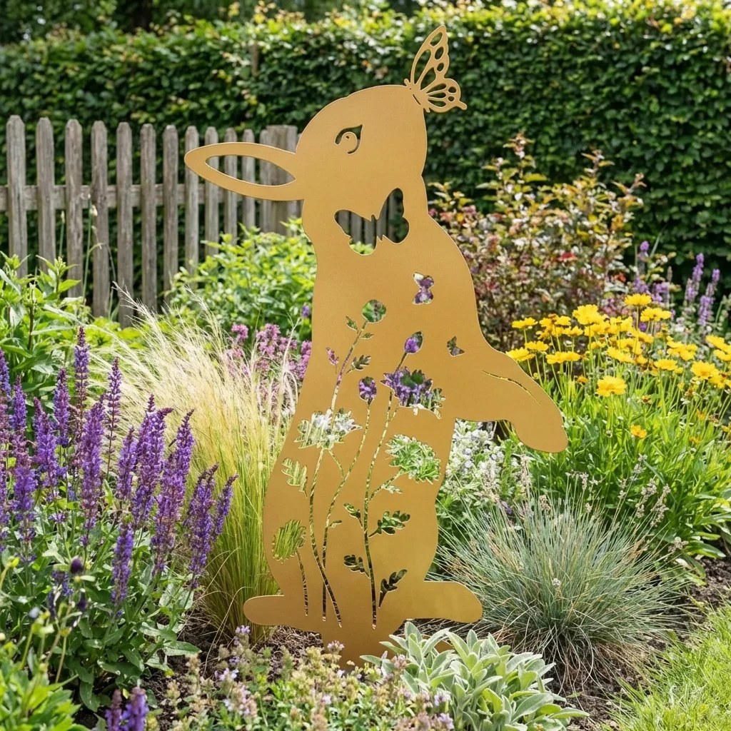 Metalowa dekoracja ogrodowa do wbicia „Królik wiosenny” to lekka, ażurowa ozdoba inspirowana wiosenną symboliką natury. Sylwetka królika pięknie komponuje się z rabatami kwiatowymi, trawnikiem oraz donicami tarasowymi, wprowadzając do ogrodu ciepły, sezonowy akcent i przyjazny charakter.