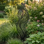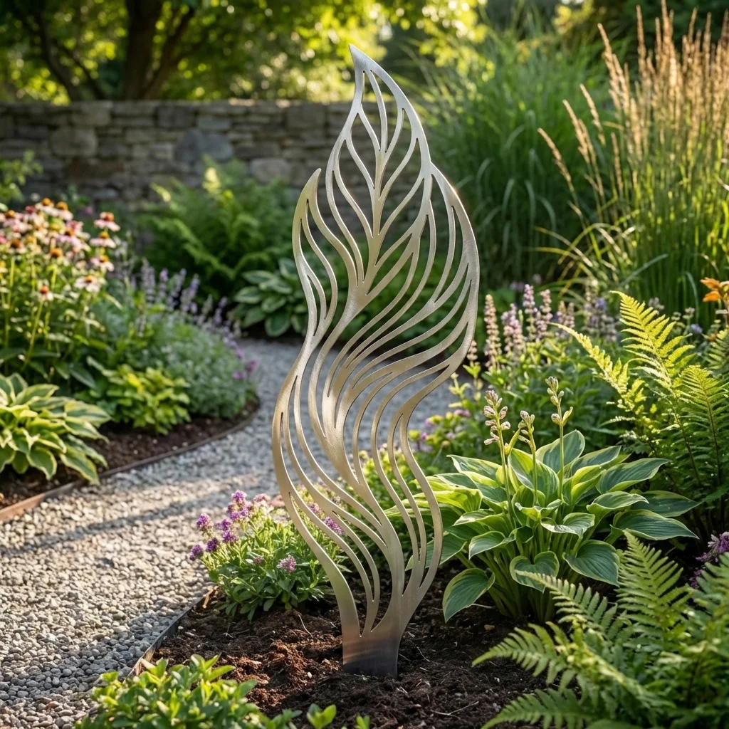 - Metalowa dekoracja ogrodowa do wbicia – stabilna forma do rabat, trawników i stref wejściowych.