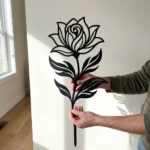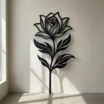 Metalowa dekoracja ogrodowa do wbicia kwiat Róża Ciszy Ogrodu to nowoczesna, ażurowa forma inspirowana sylwetką rozkwitającej róży. Smukła linia łodygi i delikatne, geometryczne płatki tworzą elegancki akcent, który wprowadza do ogrodu atmosferę spokoju, harmonii i naturalnej równowagi.