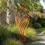 - Metalowa dekoracja ogrodowa do wbicia – stabilna forma do rabat, trawników i stref wejściowych.