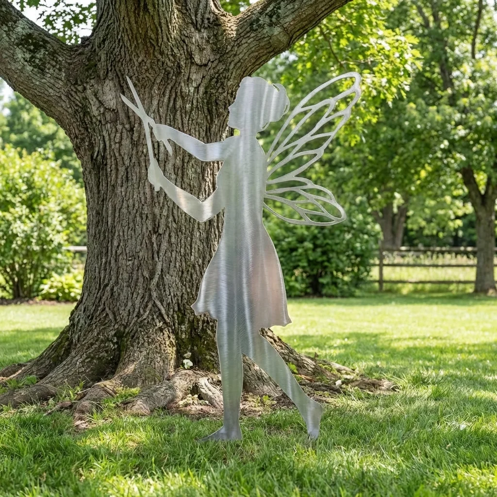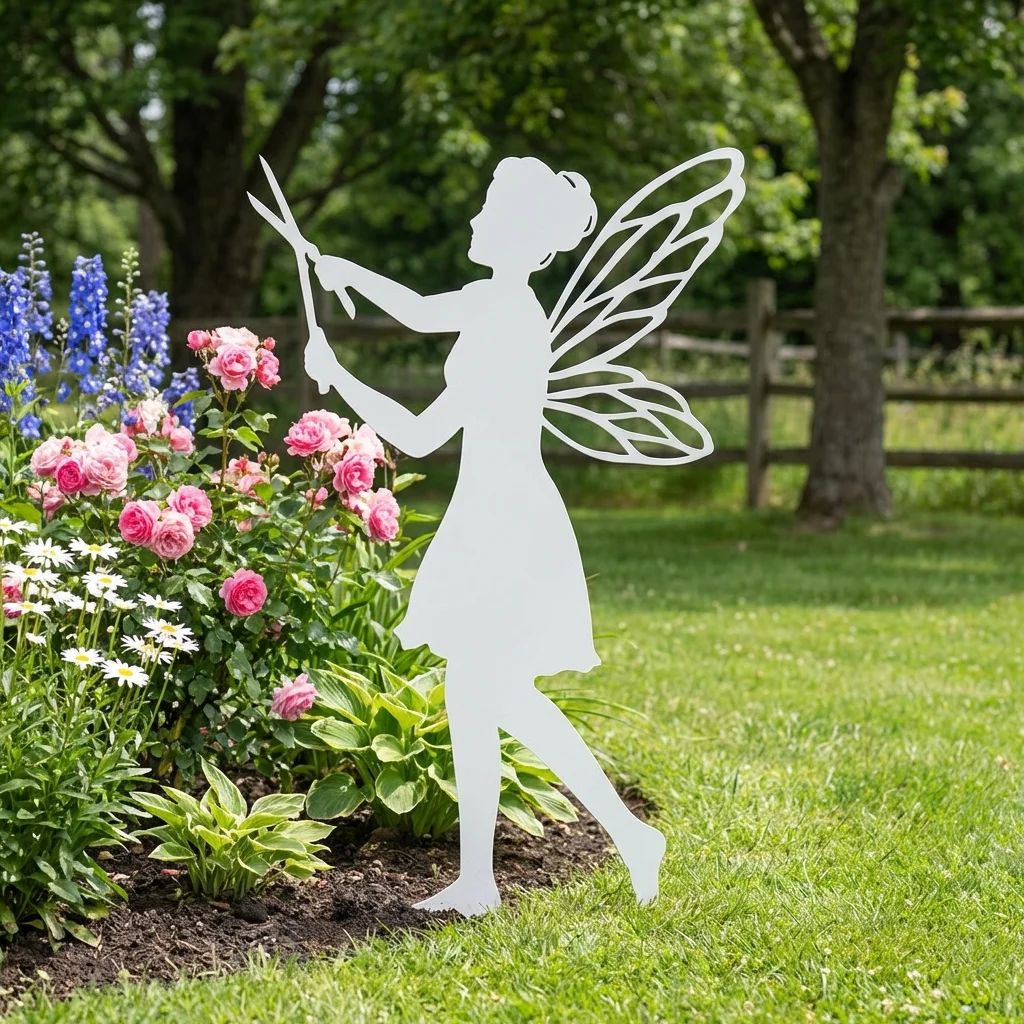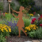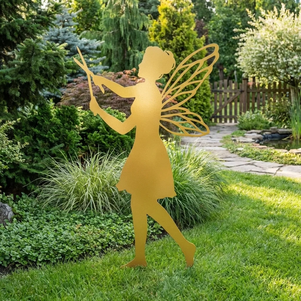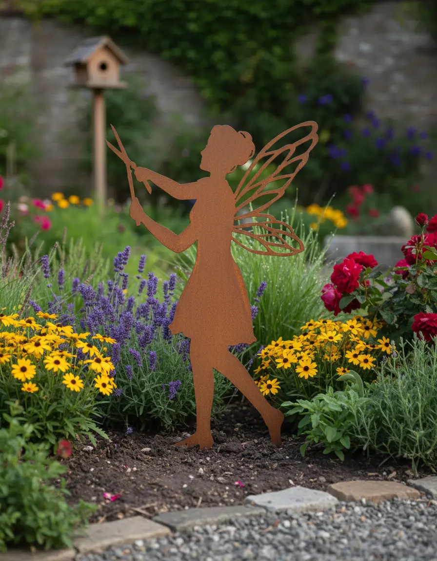 Metalowa dekoracja ogrodowa do wbicia „Wróżka Twórczyni Ogrodu” to wyjątkowa sylwetka wróżki ze skrzydłami, przedstawiona w dynamicznej, „twórczej” pozie. Dekoracja wygląda jak bajkowa opiekunka rabaty – subtelna, elegancka i przyciągająca wzrok. Świetnie komponuje się z hostami, trawami ozdobnymi, hortensjami oraz przy ścieżkach ogrodowych.