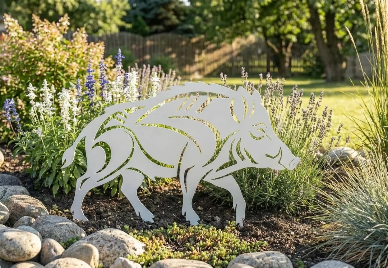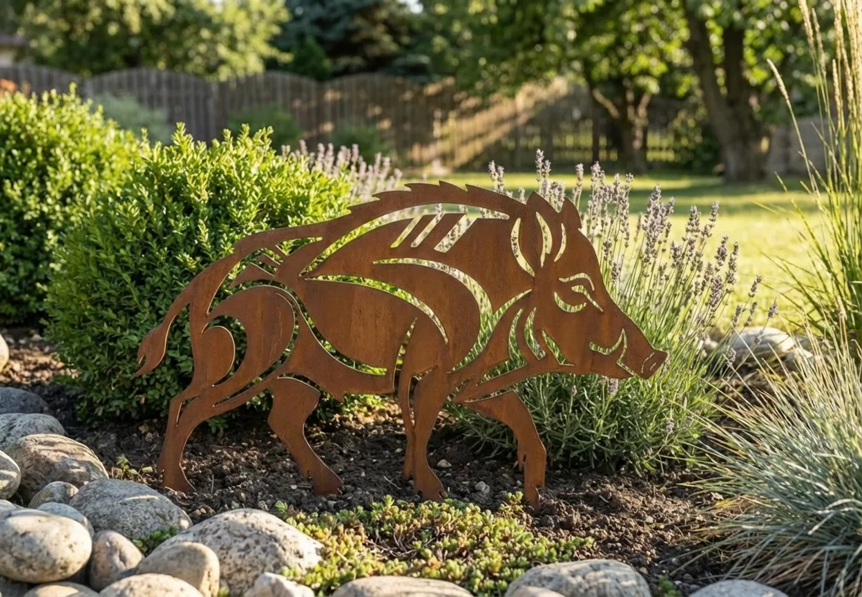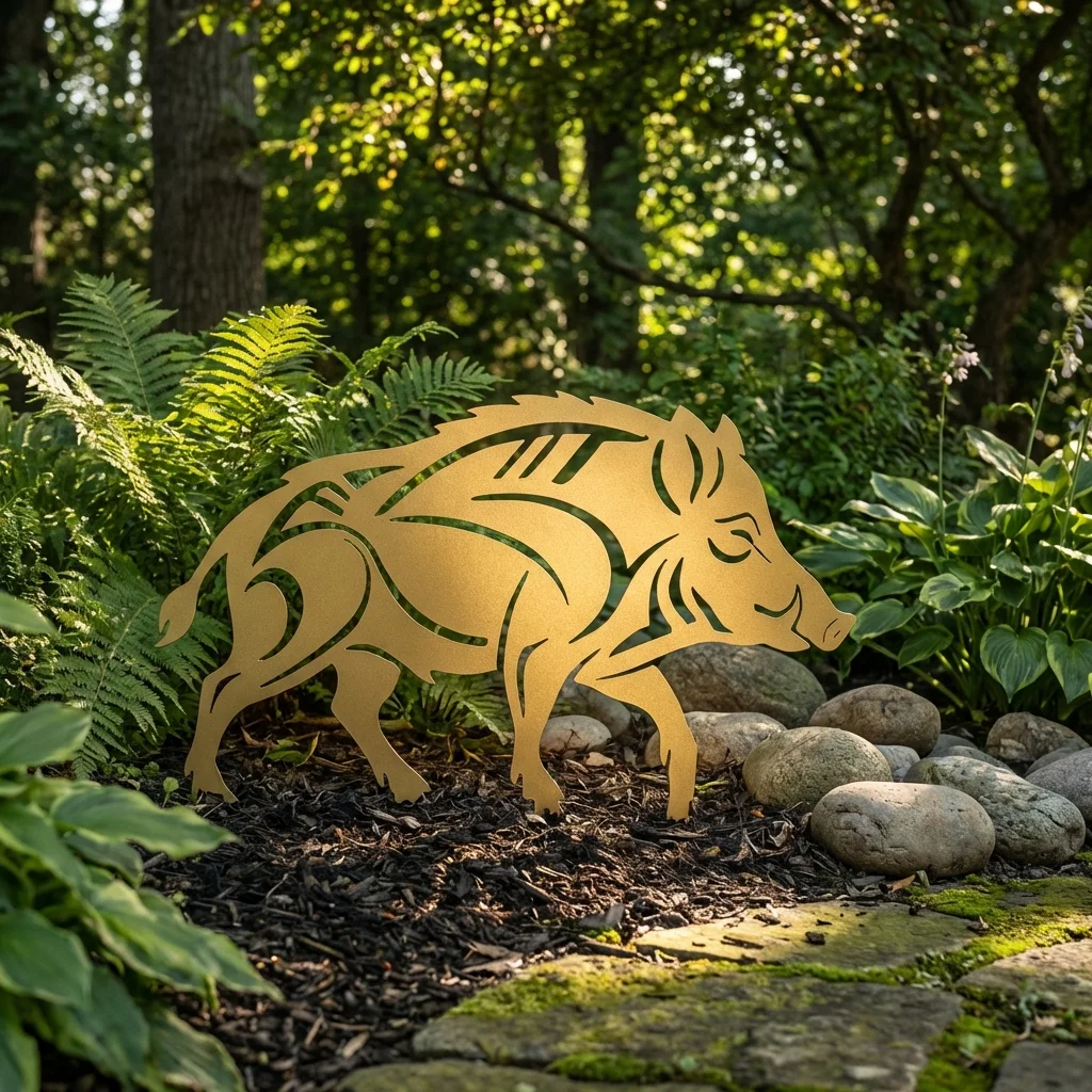 Dzik Wędrowiec Ogrodu to ażurowa, metalowa dekoracja inspirowana sylwetką dzika w ruchu — symbolem siły, wolności i naturalnej harmonii. Precyzyjne, laserowe wycięcie nadaje formie lekkości, a jednocześnie sprawia, że figura staje się wyrazistym akcentem w ogrodzie, na trawniku lub wzdłuż ścieżek.