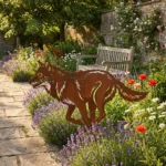 Metalowa dekoracja ogrodowa wilk do wbicia w ziemię – Wilk Leśny Biegacz