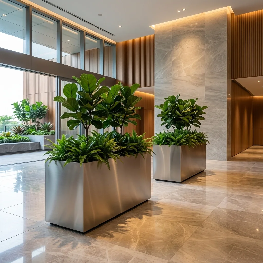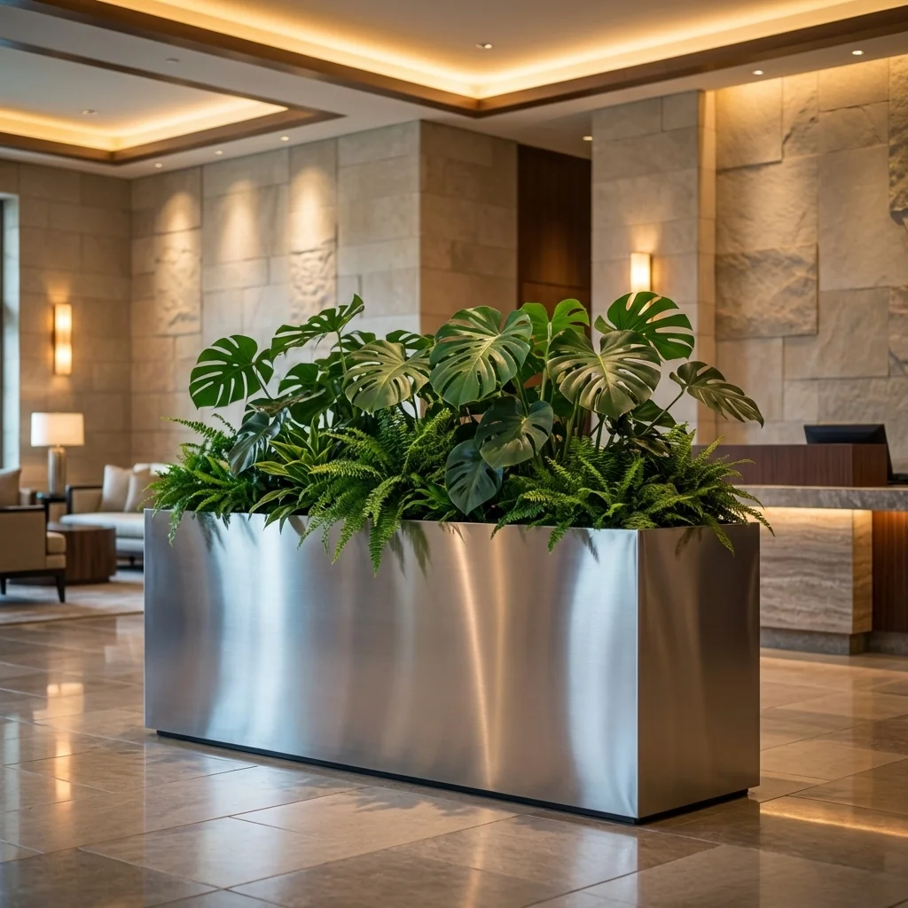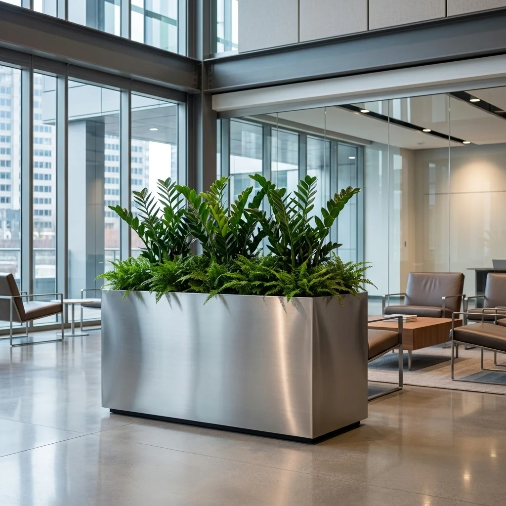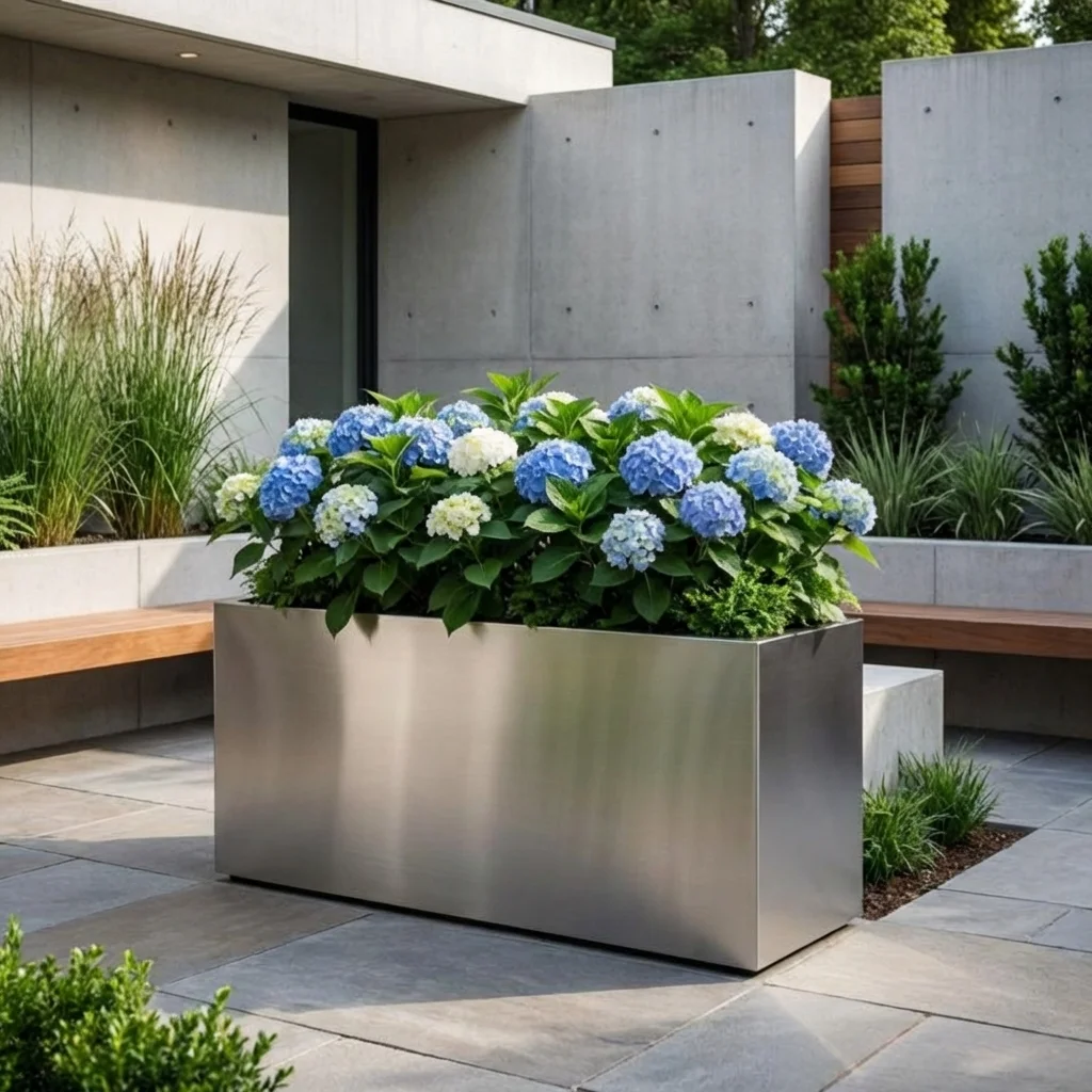 Metalowa donica prostokątna ze stali szczotkowanej do ogrodu – nowoczesna elegancja i premium charakter