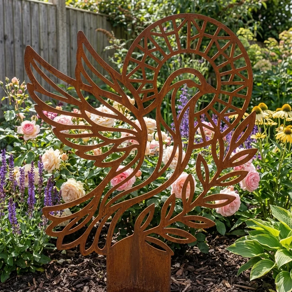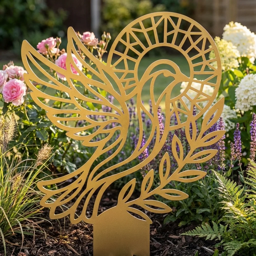 Gołębica Światła Ogrodowa to metalowa dekoracja do ogrodu o sakralnym i spokojnym charakterze. Ażurowa forma inspirowana gołębicą, skrzydłami i światłem pięknie prezentuje się wśród zieleni, przy ścieżce lub w miejscu wyciszenia. Trwałe wykonanie, elegancki wzór i darmowa dostawa w Polsce.