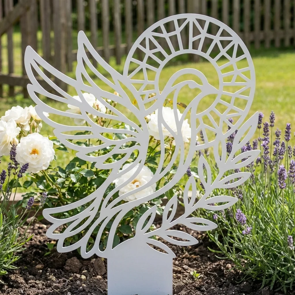 Gołębica Światła Ogrodowa to dekoracja, która łączy motyw ptaka z czytelną symboliką światła, pokoju i duchowej opieki. Dzięki lekkiej, nowoczesnej formie dobrze wpisuje się zarówno w klasyczne ogrody, jak i bardziej naturalne, spokojne przestrzenie. To piękny wybór dla osób, które szukają sakralnej ozdoby o łagodnym i harmonijnym charakterze.