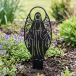 Metalowa Matka Boża do ogrodu „Matka Boża Ogrodowej Opieki” to subtelna i elegancka dekoracja sakralna, która pięknie prezentuje się wśród lawendy, traw ozdobnych, kwiatów i zielonych rabat. Ta metalowa Matka Boża do ogrodu wyróżnia się spokojną sylwetką i ozdobną, ażurową formą, dzięki czemu wnosi do przestrzeni harmonię, symboliczny spokój i poczucie opieki.