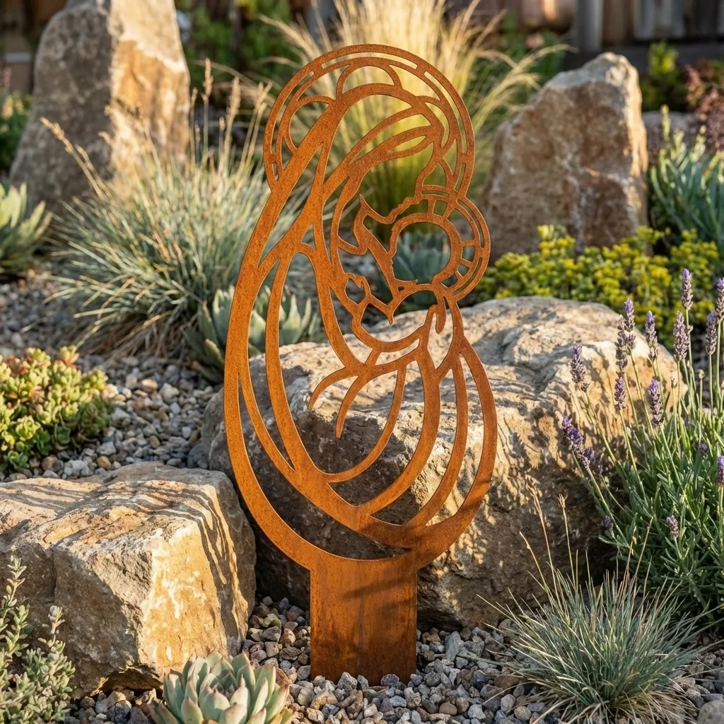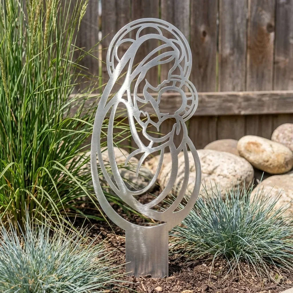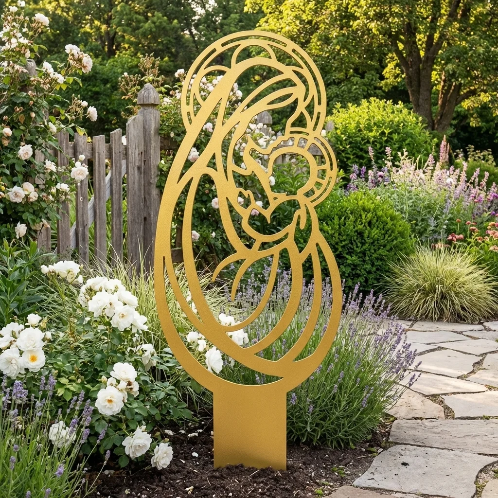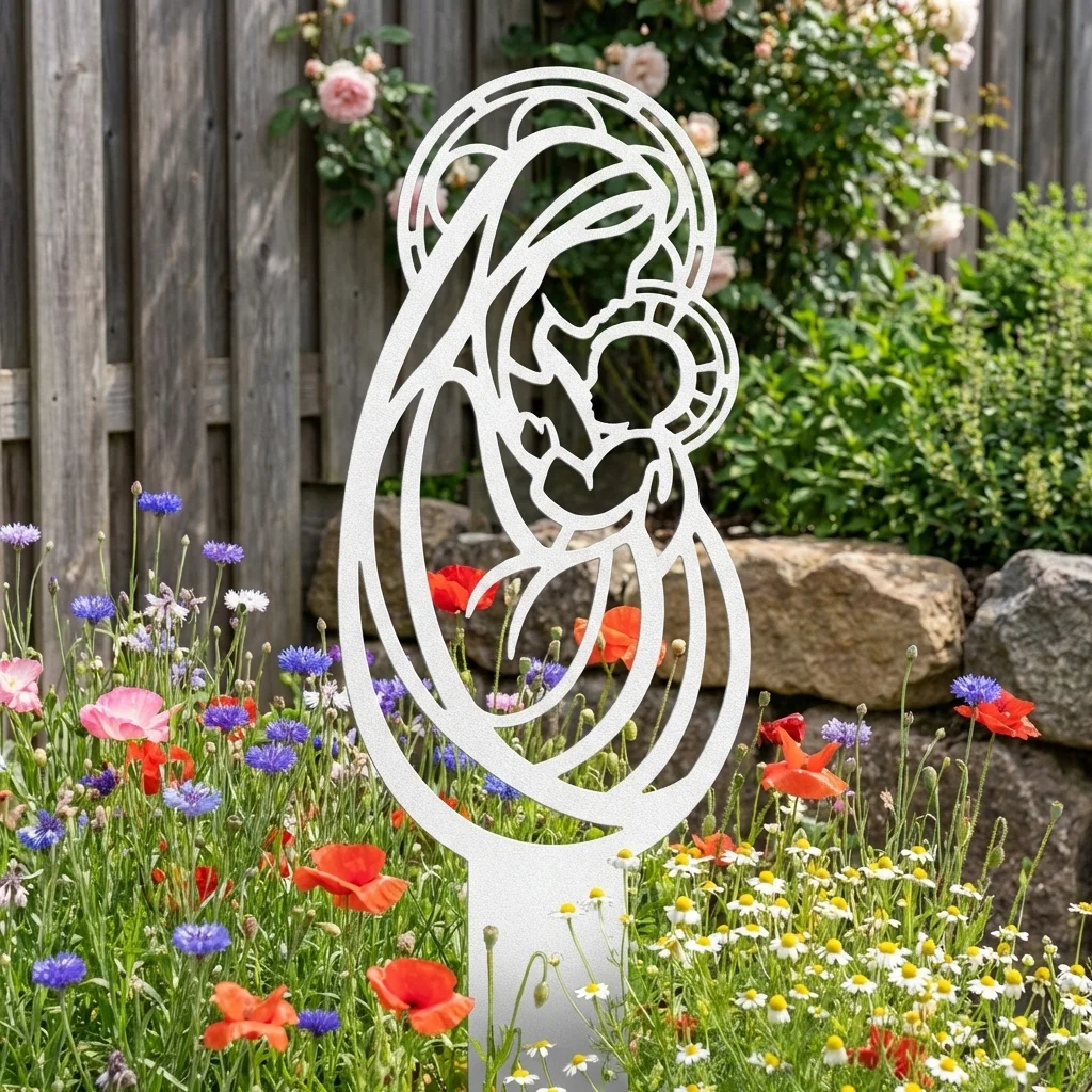 Matka Boża Złotej Czułości to dekoracja, która łączy delikatny motyw religijny z wyraźnym przekazem bliskości i opieki. Smukła, ażurowa forma sprawia, że wzór dobrze odnajduje się zarówno w klasycznych ogrodach, jak i w bardziej nowoczesnych, uporządkowanych przestrzeniach. To piękny wybór dla osób szukających sakralnej ozdoby o łagodnym i rodzinnym charakterze.