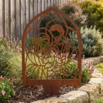 Czarny daje elegancki i wyraźny efekt, biały wygląda delikatnie i lekko, złoty dodaje dekoracji szlachetnego charakteru, stal polerowana lub szczotkowana dobrze pasuje do nowoczesnych aranżacji, a corten pięknie współgra z zielenią oraz naturalnym otoczeniem ogrodu.