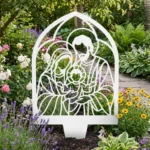 Metalowa Święta Rodzina do ogrodu „Święta Rodzina w Kapliczce Ogrodowej” to wyjątkowa dekoracja sakralna, która pięknie prezentuje się wśród kwiatów, przy ścieżce, obok tarasu lub w spokojnym zakątku zieleni. Ta metalowa Święta Rodzina do ogrodu łączy symboliczny charakter z elegancką, ażurową formą inspirowaną kapliczką ogrodową.