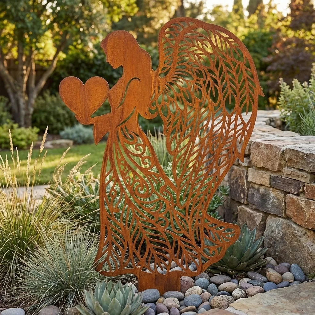 Anioł Serca Ogrodowego – metalowa dekoracja do ogrodu