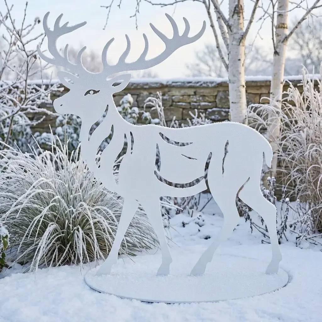Metalowy jeleń wolnostojący „Leśny Monarch” – efektowna rzeźba ogrodowa z majestatycznym porożem, idealna do ogrodu, na taras i przy ścieżki. Rozmiary: 53×60 cm, 62×70 cm, 71×80 cm. Wykończenia: corten (rdzawy), czarny, biały, złoty lub stal nierdzewna polerowana/szczotkowana. Darmowa dostawa na terenie Polski.