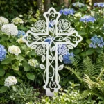 Metalowy krzyż do ogrodu – Krzyż Ogrodowy Różany