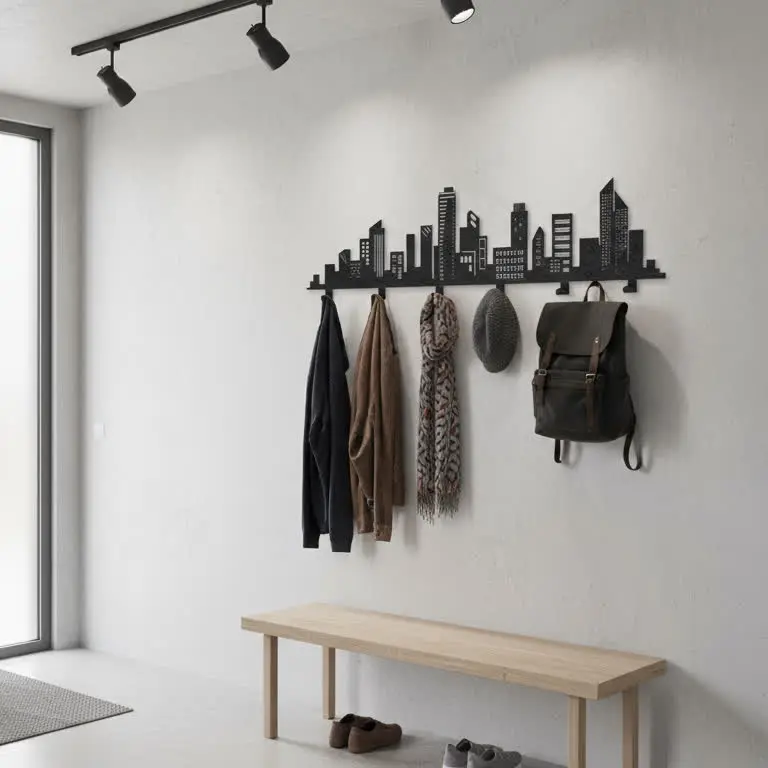 Metalowy Wieszak Ścienny Panorama Miasta to idealny wybór dla miłośników nowoczesnych i loftowych wnętrz. Motyw miejskich drapaczy chmur sprawia, że wieszak łączy w sobie praktyczność i wyjątkowy design.