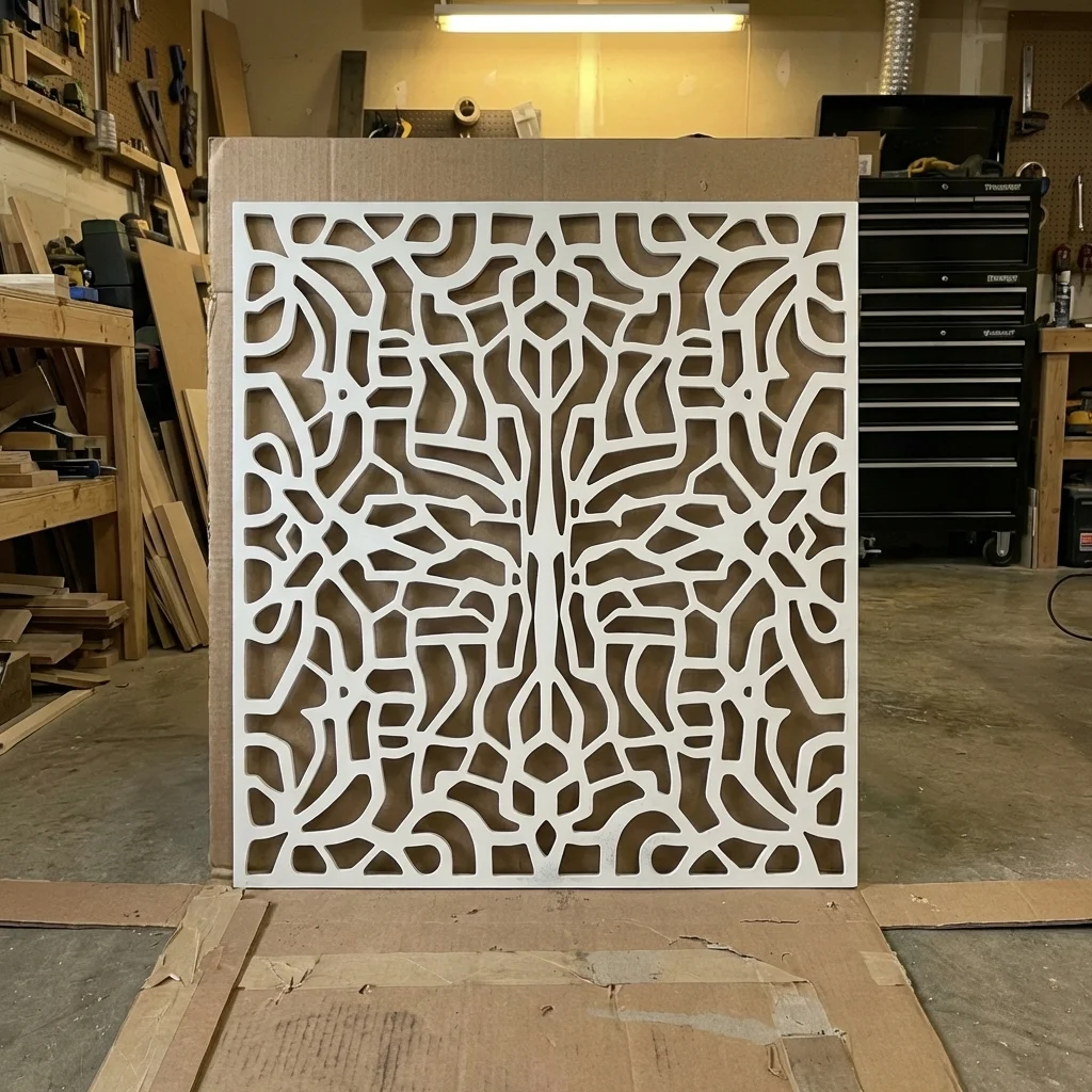 - Efekt światła i cienia – ażurowy panel zmienia charakter przestrzeni w zależności od oświetlenia.