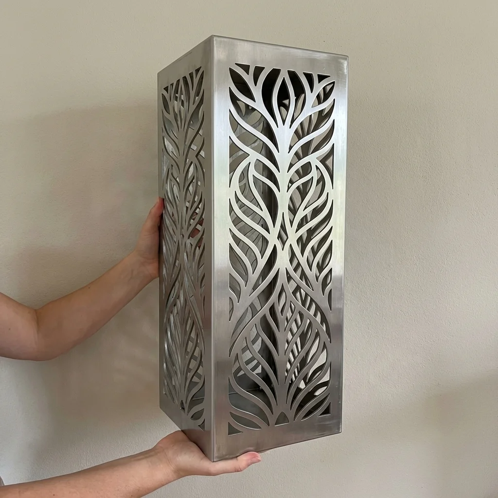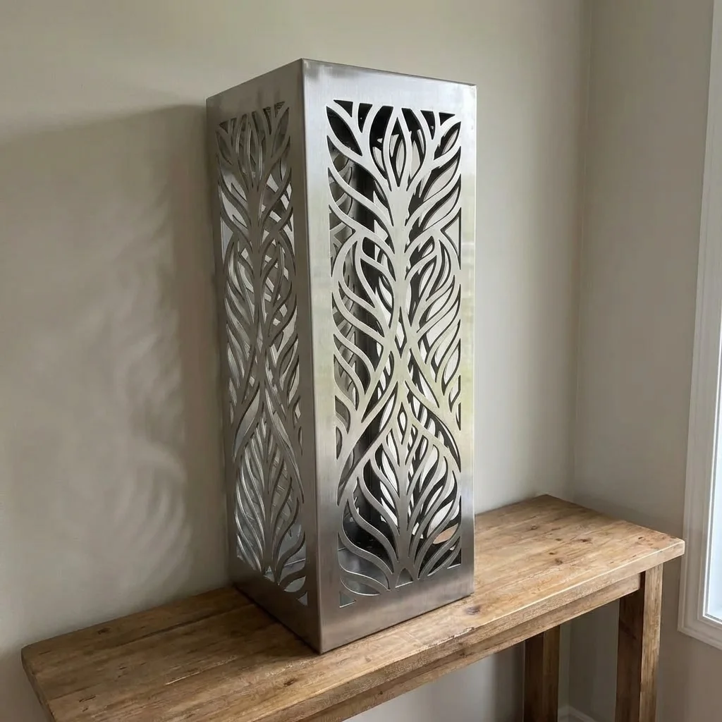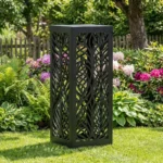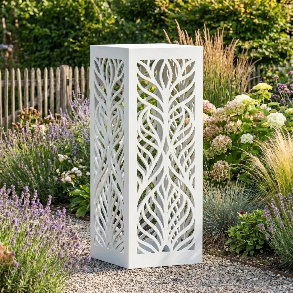 „Nowoczesna Botanika” to metalowa kolumna ogrodowa z precyzyjnym, ażurowym wzorem liści w nowoczesnej, architektonicznej interpretacji. Minimalistyczna forma połączona z motywem natury tworzy elegancki element kompozycyjny dla ogrodów prywatnych oraz przestrzeni komercyjnych.