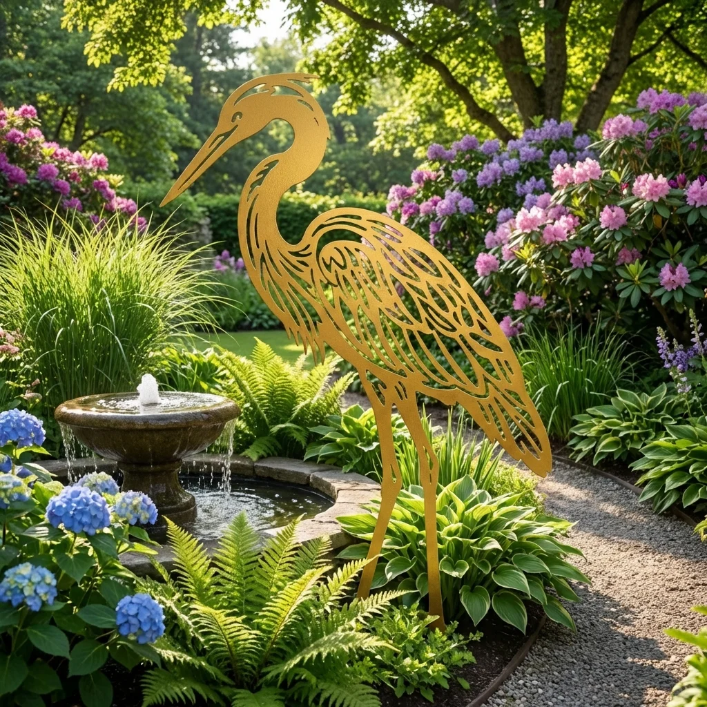 - Elegancka sylwetka czapli – lekka forma, która pasuje do nowoczesnych i naturalnych ogrodów.