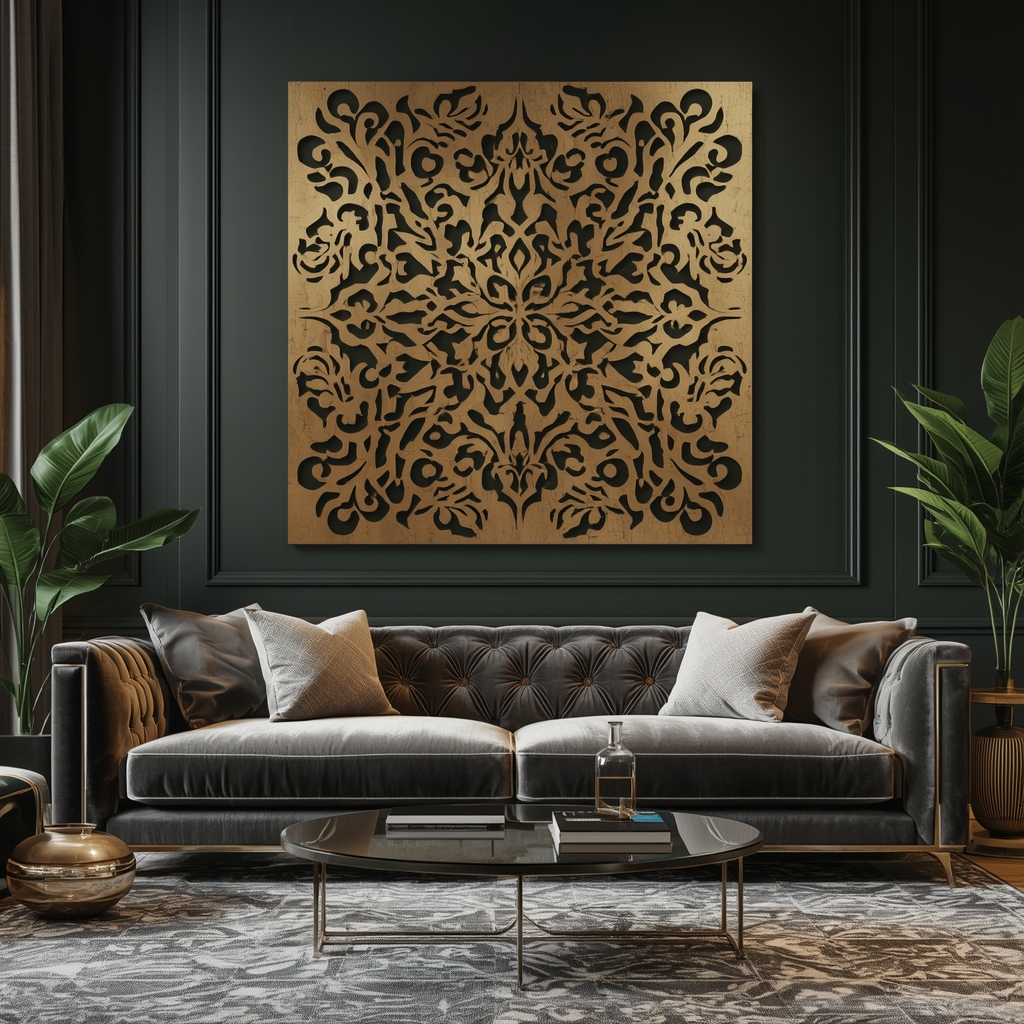 Może stanowić efektowną dekorację ścienną w salonie, biurze, hotelowym lobby czy przestrzeni komercyjnej. Dzięki bogatej ornamentyce panel doskonale wpisuje się zarówno w klasyczne, jak i nowoczesne aranżacje, stając się centralnym punktem wystroju.
