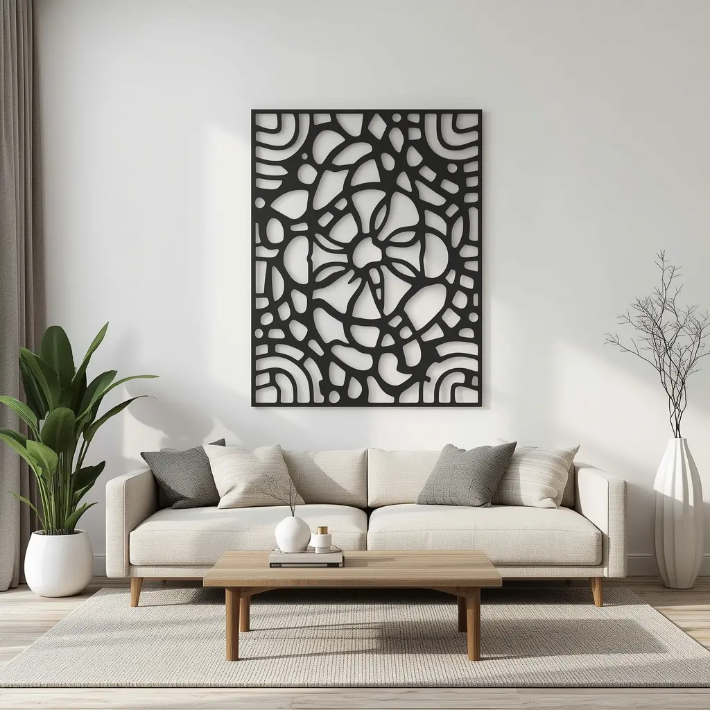 Panel Dekoracyjny Metalowy Fale Chaosu to połączenie sztuki i nowoczesnego designu. Jego misternie wycinane wzory przypominają falujące linie i abstrakcyjny labirynt, który przyciąga uwagę i nadaje przestrzeni wyjątkowego klimatu.