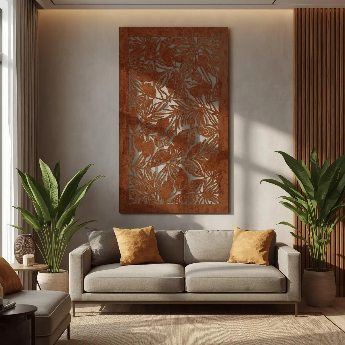 Panel dekoracyjny z motywem bujnej roślinności, inspirowany tropikalną dżunglą. Idealny do wnętrz i ogrodów, nadający przestrzeni egzotycznego i naturalnego charakteru.