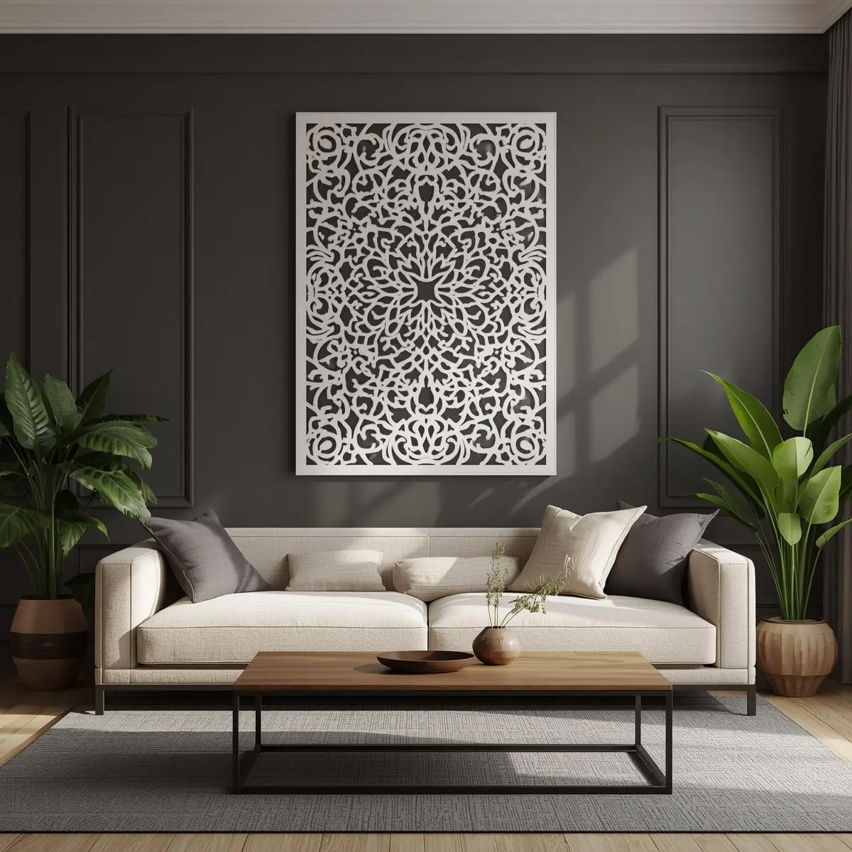 Dzięki bogatemu, ornamentalnemu wzorowi inspirowanemu sztuką arabeskową, panel przyciąga uwagę i wprowadza do wnętrza harmonię oraz szyk.
