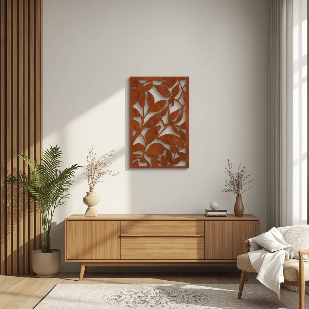 Wykonany ze stali cortenowej, panel z czasem pokrywa się charakterystyczną rdzawą patyną, która podkreśla jego wyjątkowy charakter. Świetnie sprawdzi się jako ozdoba ścienna w salonie, sypialni czy biurze, a także w przestrzeniach zewnętrznych – na tarasie, elewacji czy w ogrodzie.