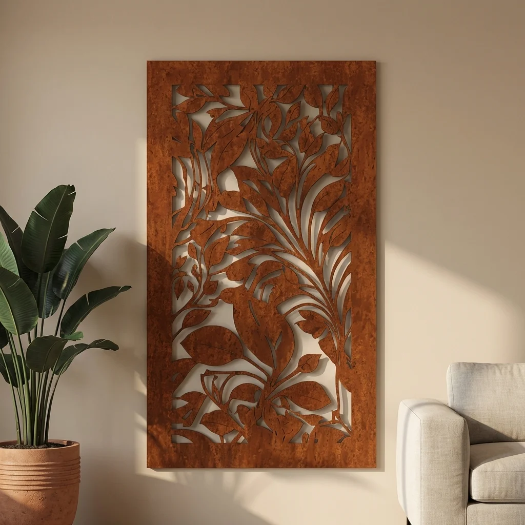 Climbing Leaves to metalowy panel dekoracyjny z motywem pnących liści – lekki wizualnie, a jednocześnie wyrazisty. Ażurowy wzór ociepla aranżację i wprowadza roślinny akcent, który pasuje zarówno do wnętrz nowoczesnych, jak i bardziej klasycznych.
