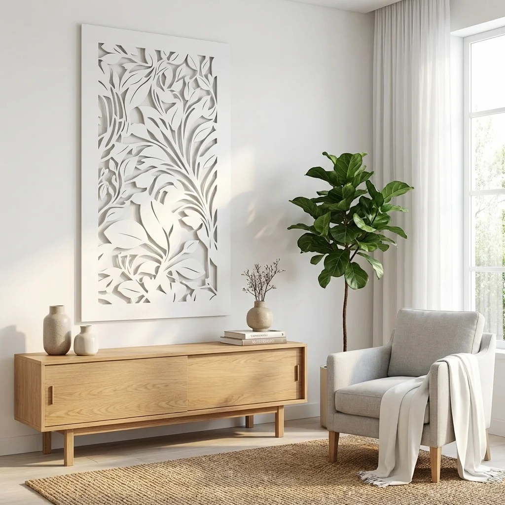 - Ażurowy efekt – dekoracja daje subtelną grę światła i cienia na ścianie.