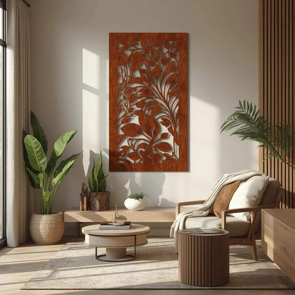 Wykonany z wysokiej jakości stali cortenowej, z czasem zyskuje naturalną rdzawą patynę, która podkreśla jego unikalny wygląd. Panel może pełnić rolę dekoracji ściennej, elementu tarasu, ogrodu, altany czy elewacji. To doskonałe połączenie trwałości metalu i piękna natury.