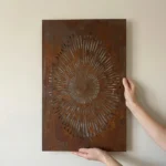 Panel Dekoracyjny Metalowy Cosmic Sun to efektowna dekoracja ścienna z promienistym wzorem przypominającym słońce. Centralny „rozbłysk” nadaje aranżacji energii i świetnie wygląda zarówno w nowoczesnych wnętrzach, jak i w przestrzeniach zewnętrznych (taras, ogród, elewacja) – szczególnie, gdy panel łapie światło i rzuca cień.