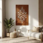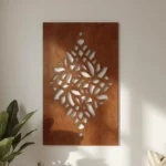 Panel dekoracyjny metalowy „Diamond Rosette” z symetrycznym, geometryczno-roślinnym wzorem w formie diamentu. Wykonany z cortenu, idealny do wnętrz i ogrodów.