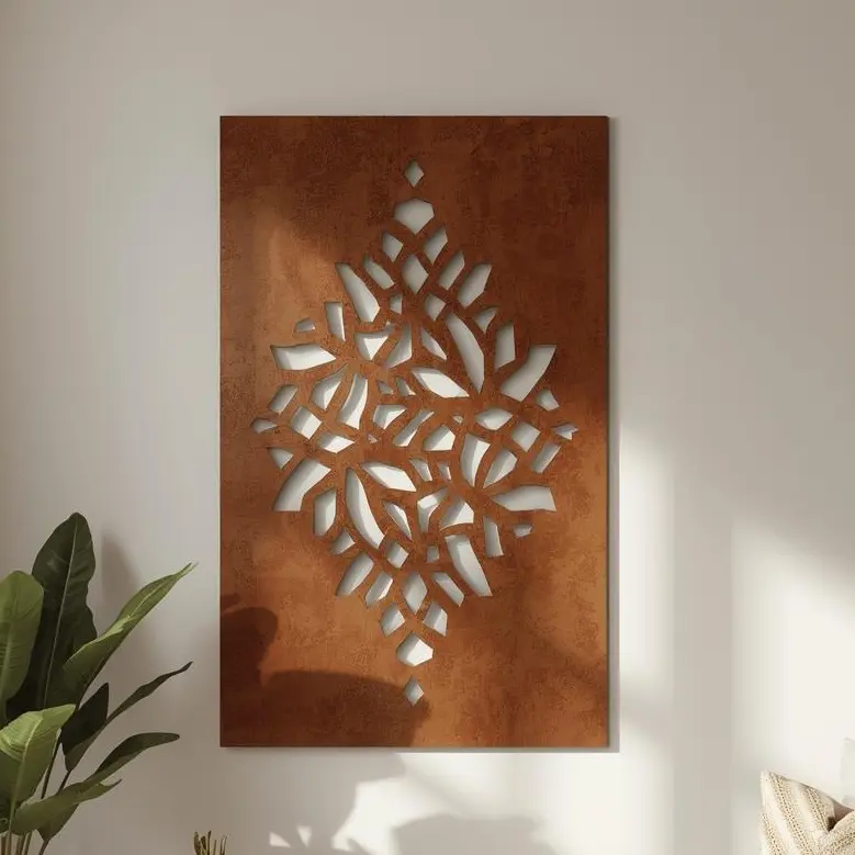 Wykonany z trwałej stali cortenowej, z czasem zyskuje naturalną, rdzawą patynę, która podkreśla jego unikalny styl. Panel świetnie sprawdzi się zarówno we wnętrzach – jako dekoracja ścienna w salonie, biurze czy korytarzu – jak i na zewnątrz, np. w ogrodzie, na tarasie lub elewacji.