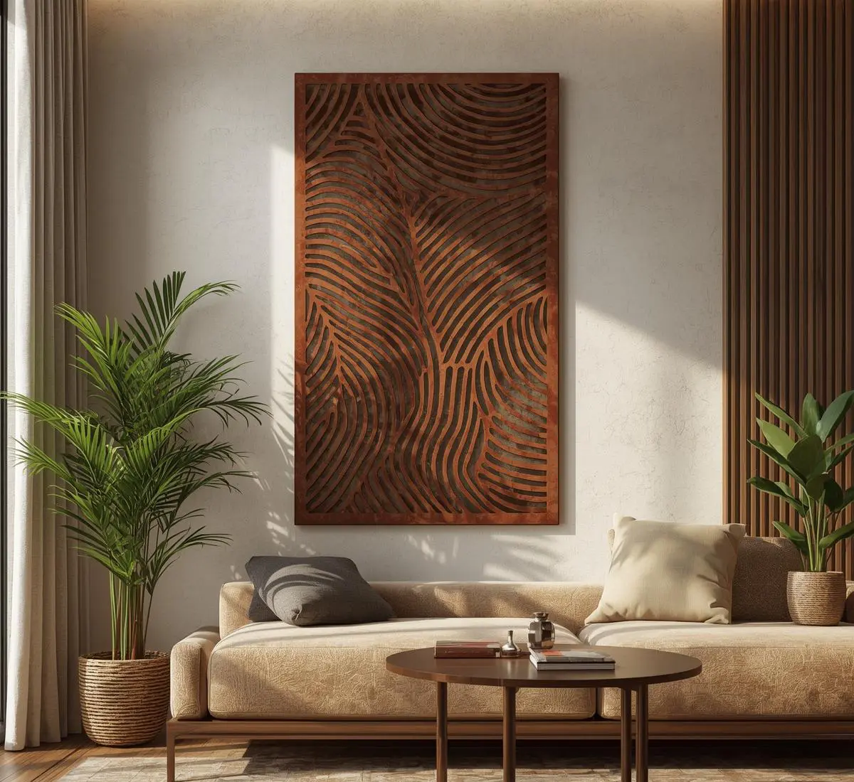 Wykonany ze stali cortenowej, panel z czasem zyskuje naturalną rdzawą patynę, dodając mu szlachetności i niepowtarzalnego wyglądu. Idealnie sprawdzi się we wnętrzach industrialnych, loftowych i nowoczesnych – jako dekoracja ścienna w salonie, biurze czy korytarzu. Świetnie prezentuje się również na zewnątrz – w ogrodzie, na tarasie czy elewacji.