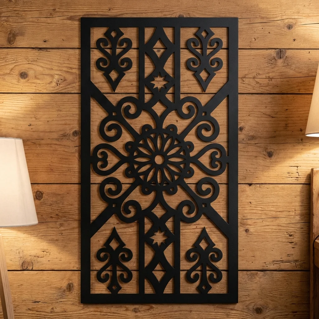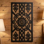 Panel dekoracyjny metalowy góralski – Rozeta Parzenic Podhala to pionowa ozdoba ścienna inspirowana rozetą i tradycyjnymi ornamentami Podhala. Świetnie pasuje do elewacji, kamiennego muru, tarasu, altany lub wnętrza w stylu regionalnym. To dekoracja, która łączy góralski charakter z elegancką metalową formą.