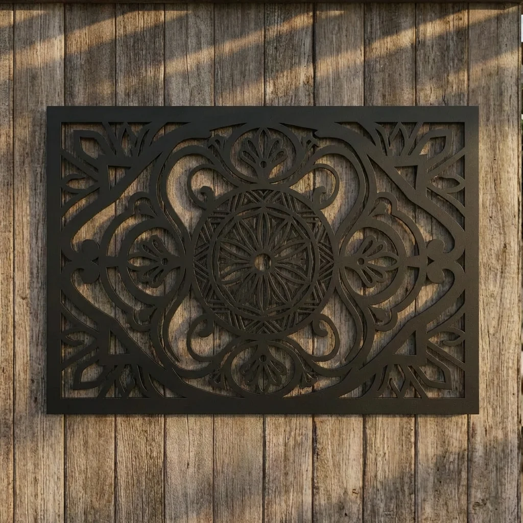 Panel dekoracyjny metalowy góralski – Rozeta Tatrzańskiej Harmonii to elegancka ozdoba ścienna inspirowana ornamentyką Podhala. Symetryczny wzór z centralną rozetą pięknie prezentuje się we wnętrzach, na elewacji, tarasie lub przy strefie wejściowej. To dekoracja, która łączy góralski charakter z nowoczesną formą wycinaną w metalu.