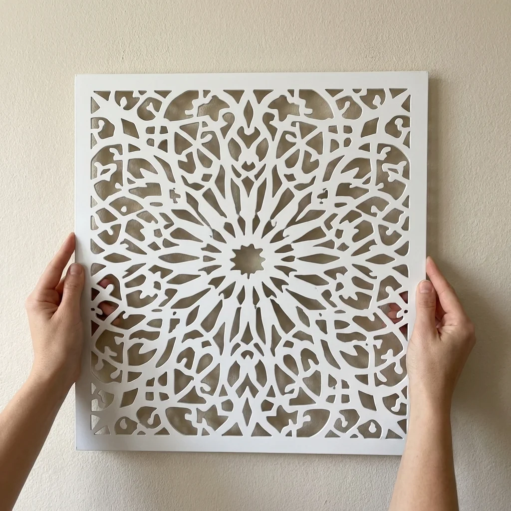 Panel Dekoracyjny Metalowy Gwiezdna Sieć to efektowna dekoracja ścienna, która przyciąga uwagę precyzyjnym, ażurowym wzorem inspirowanym symetrią, ornamentem i układem przypominającym rozchodzącą się gwiezdną strukturę. To model idealny dla osób, które szukają eleganckiego dodatku do wnętrza, na taras, do zadaszonej strefy wypoczynkowej lub nowoczesnej przestrzeni przydomowej.