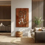 Wykonany z wysokiej jakości stali cortenowej, panel z czasem pokrywa się naturalną rdzawą patyną, która podkreśla jego wyjątkowy charakter. Doskonale sprawdzi się zarówno we wnętrzach – jako ozdoba ścienna w salonie, biurze czy holu – jak i w aranżacjach zewnętrznych, np. na tarasie, w ogrodzie czy na elewacji.