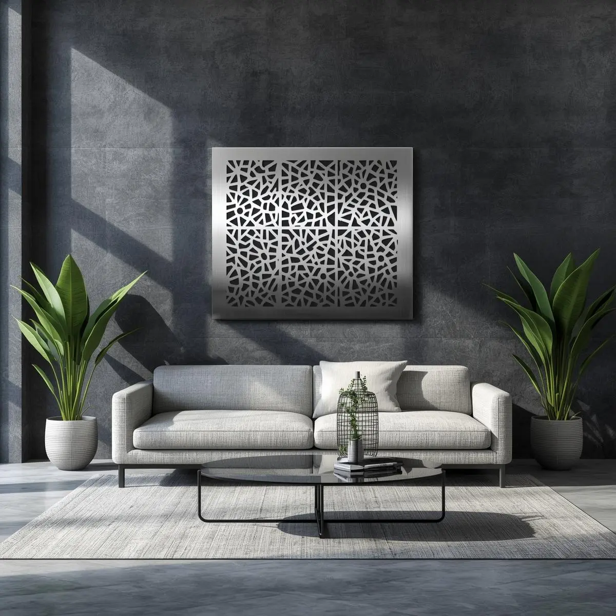 Panel Dekoracyjny Metalowy Urban Mosaic to propozycja dla osób ceniących nowoczesne i industrialne wzornictwo. Dynamiczny, mozaikowy wzór inspirowany miejską architekturą tworzy niepowtarzalny efekt wizualny, idealny do wnętrz w stylu loftowym, minimalistycznym czy modern.