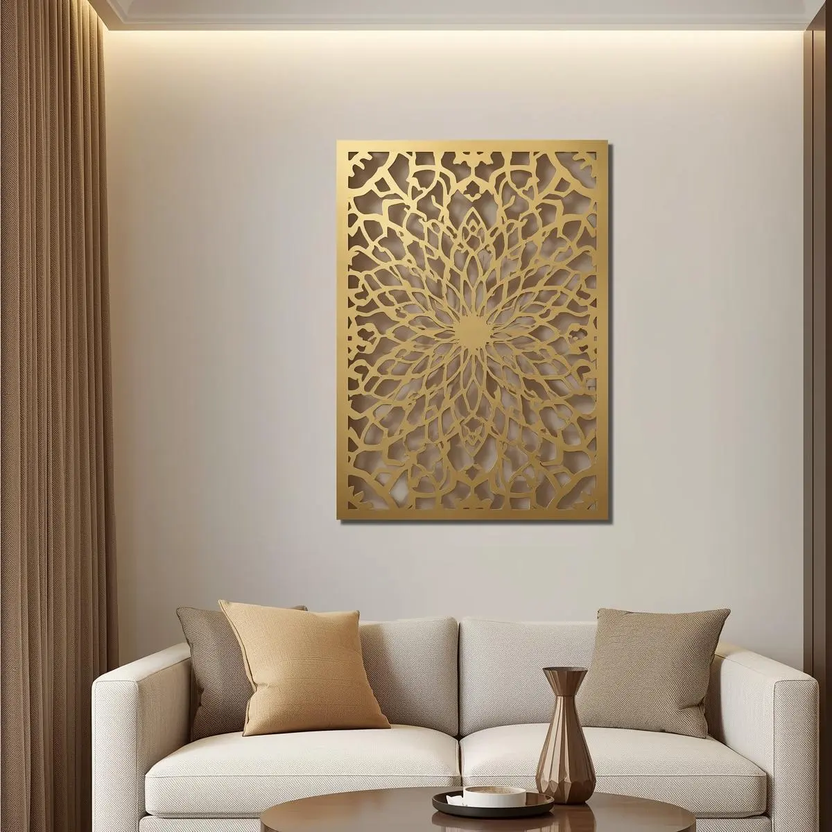 Panel Dekoracyjny Metalowy Złoty Kwiat to połączenie klasyki i nowoczesności. Wykonany z najwyższej jakości metalu, zachwyca precyzyjnym wzorem przypominającym kwiat w pełnym rozkwicie. Złote wykończenie nadaje mu elegancji i sprawia, że świetnie sprawdzi się zarówno w nowoczesnych, jak i klasycznych wnętrzach. Panel może pełnić funkcję dekoracji ściennej, przegrody w pomieszczeniu lub elementu ozdobnego w biurach, restauracjach i hotelach. To wyjątkowy akcent, który przyciąga wzrok i podkreśla styl przestrzeni.