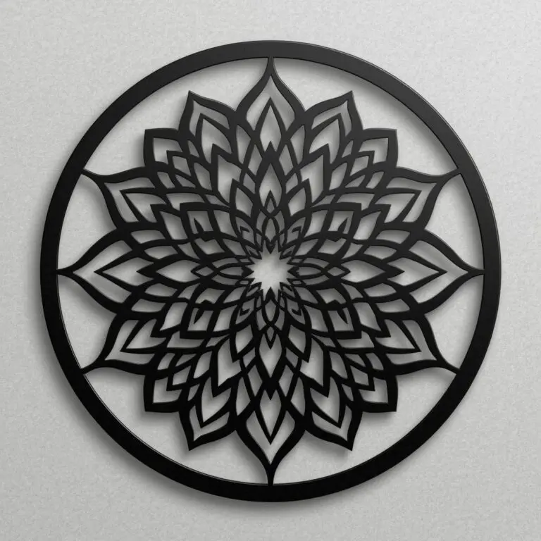 Panel metalowy kwiat lotosu 3 to dekoracyjny panel ścienny w kształcie kwiatu lotosu, inspirowany mandalą. Ażurowy wzór oraz precyzyjne cięcie laserowe tworzą elegancki efekt i delikatną grę światła na ścianie – idealnie do wnętrz nowoczesnych i klasycznych.