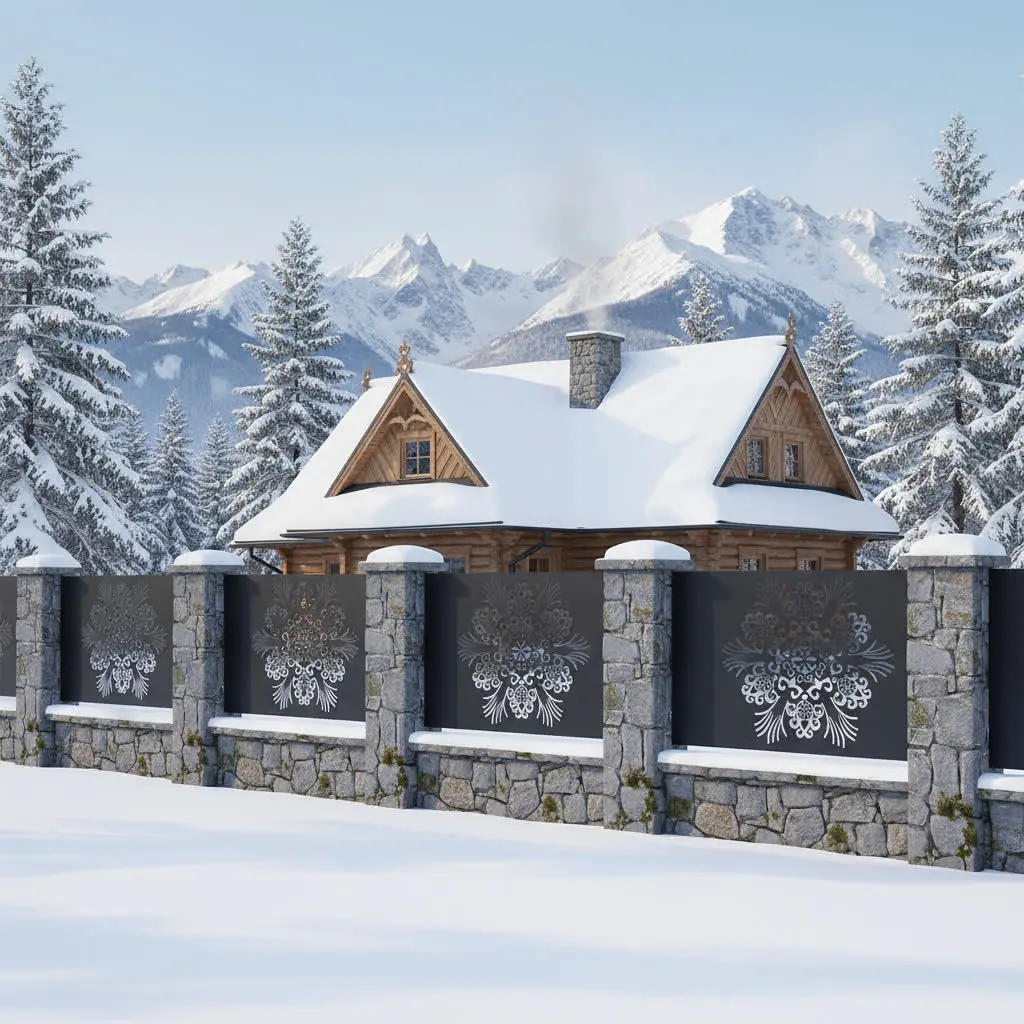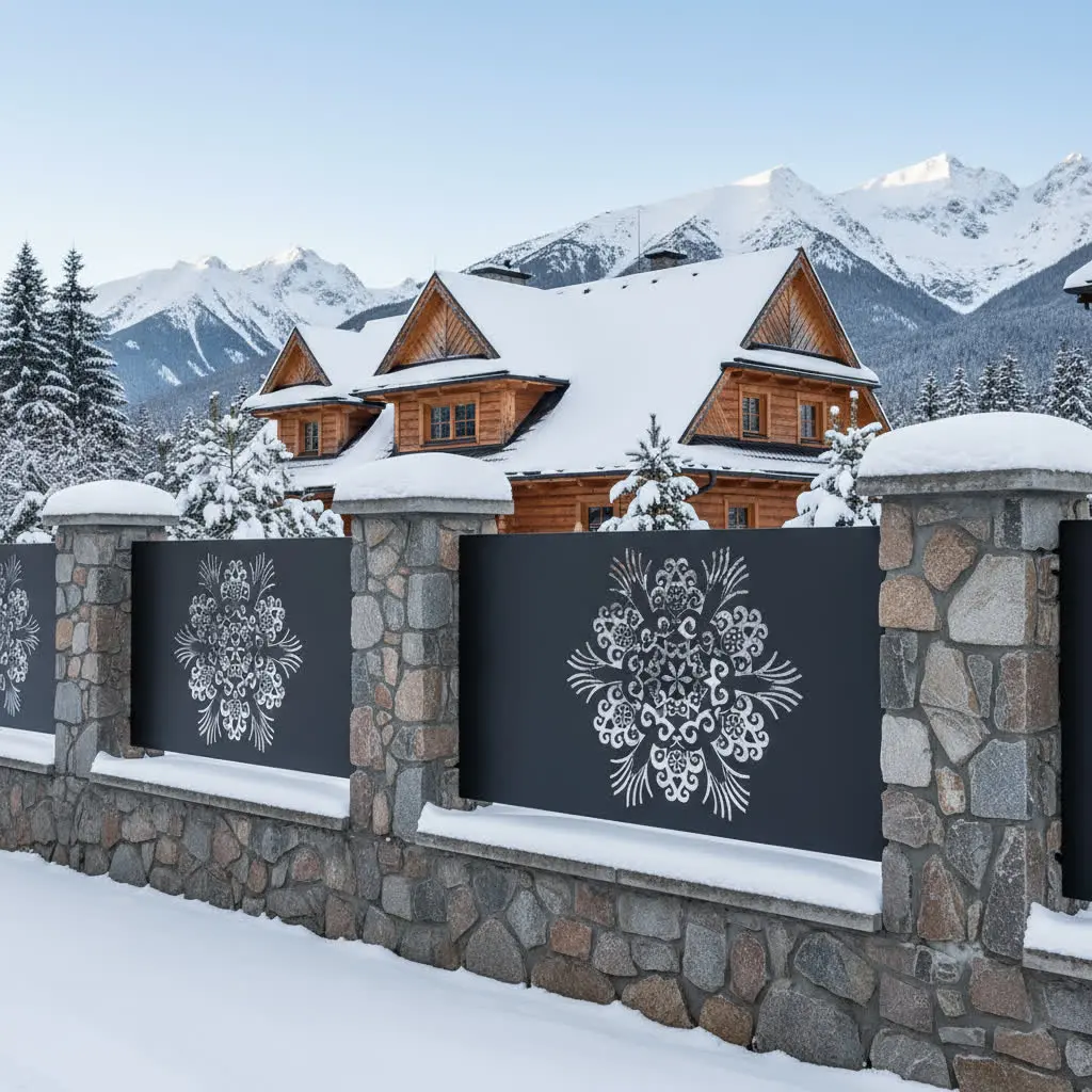 Stylowy panel ogrodzeniowy z ornamentem inspirowanym góralskim wzornictwem. Łączy tradycyjne motywy Podhala z nowoczesnym wykonaniem i eleganckim charakterem.
