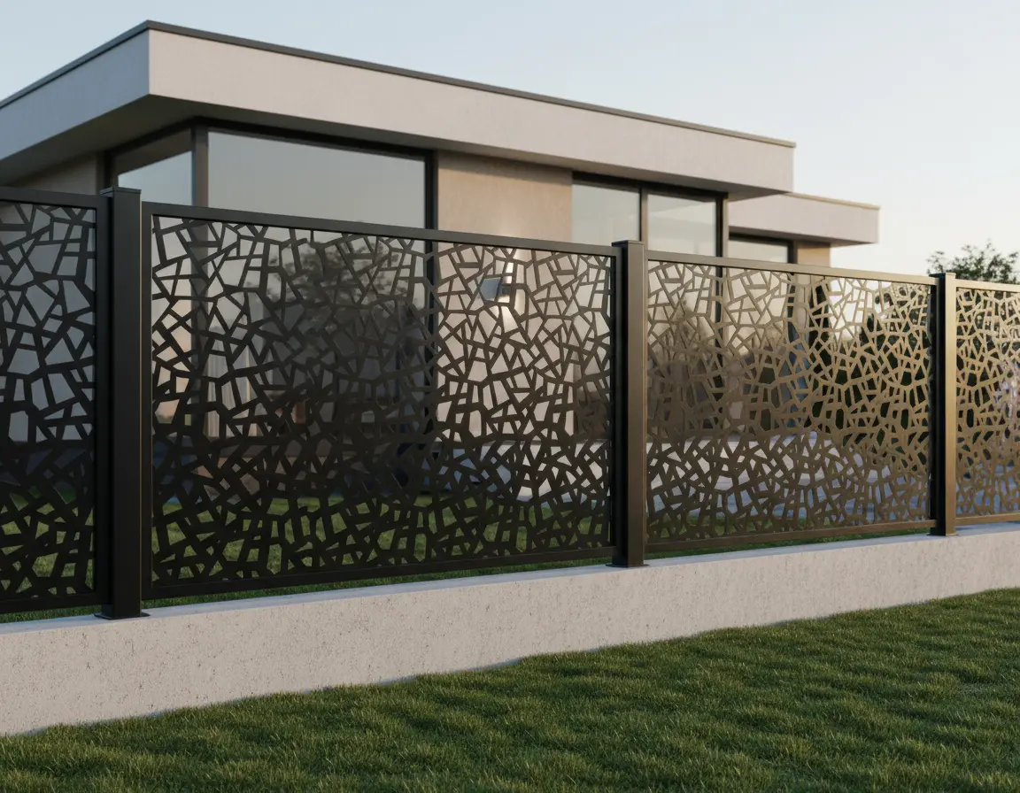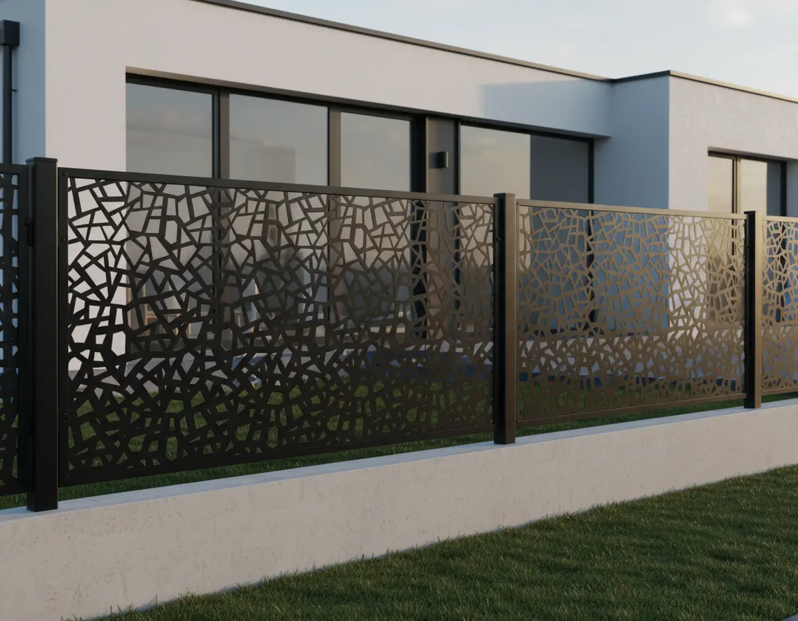 Nowoczesny panel ogrodzeniowy z abstrakcyjnym wzorem mozaiki. Idealny do minimalistycznych i eleganckich aranżacji.