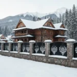 Świetnie prezentuje się w zestawieniu z kamiennymi lub betonowymi słupkami, tworząc eleganckie ogrodzenie w stylu podhalańskim.
